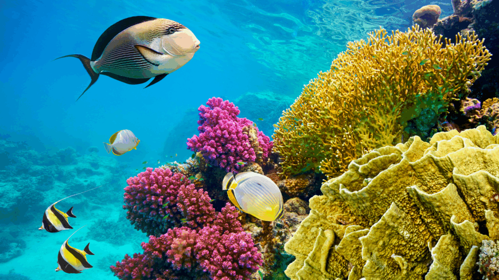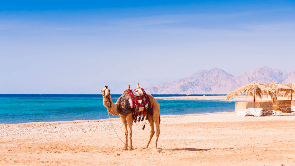 Nuostabūs koraliniai rifai, karšta Egipto saulė, auksinio smėlio paplūdimiai ir šilta Raudonoji jūra, galimybė nukeliauti į Sinajaus kalną (užsakant ekskursiją).