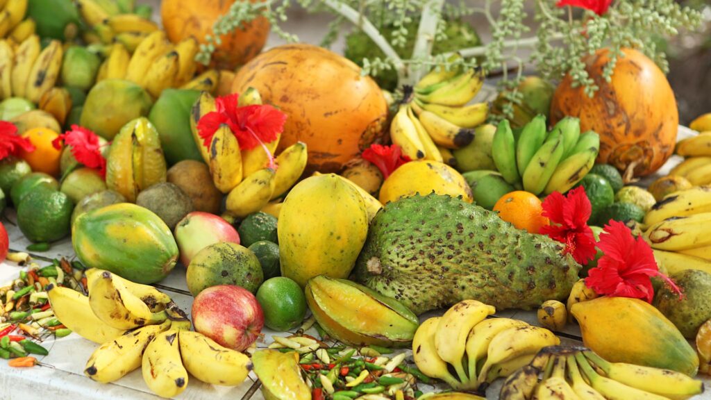 - Tropiniai vaisiai: mangai, avokadai, papajos, karambola ir daugybė kitų. Spalvingi, egzotiškais kvapais viliojantys vaisiai yra nebrangūs.