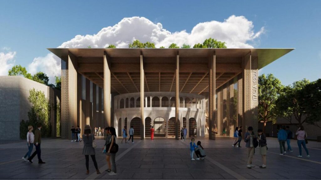 Italijos paviljoną Expo 2025 parodoje Osakoje suprojektavo garsi studija MCA – Mario Cucinella Architects. Paviljono tema – „Menas atgaivina gyvenimą“, o pateikimas – šiuolaikiško Renesanso laikų „Idealaus miesto“ vizijos interpretacija. Tai dinamiška erdvė, kur susitinka tradicijos ir inovacijos, pabrėžiančios Italijos įsipareigojimą tvarumui, kultūrai ir technologinei pažangai. Be to, pirmą kartą parodos istorijoje Italijos paviljone įrengtas Šventojo Sosto paviljonas – dvasingumui skirta erdvė.