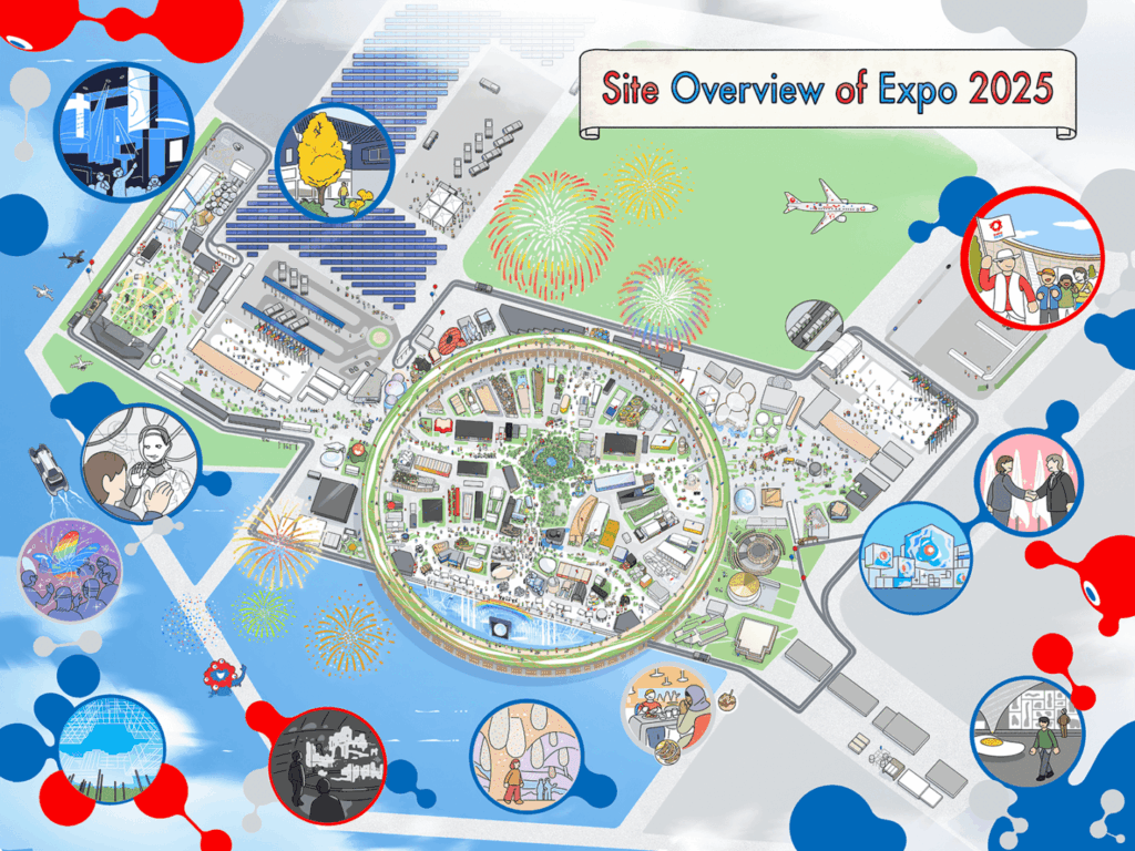 Lankytojai šiame EXPO paviljone kviečiami į kelionę ratu per 3 temines zonas, kurių kiekviena siūlo unikalų požiūrį į gyvybės ciklą. Gyvenimo teatras – įtraukianti erdvė, kurioje pristatoma istorija, iliustruojanti visų gyvų būtybių tarpusavio ryšį. Inovacijų ciklas – eksponatai, demonstruojantys Japonijos pažangą technologijų ir tvarumo srityse. Harmonijos sodas – rami vietovė, atspindinti Japonijos estetinį jausmą, skatinanti pamąstyti apie žmonijos santykį su gamta. Plačiau apie Japonijos paviljoną – skaityti čia.