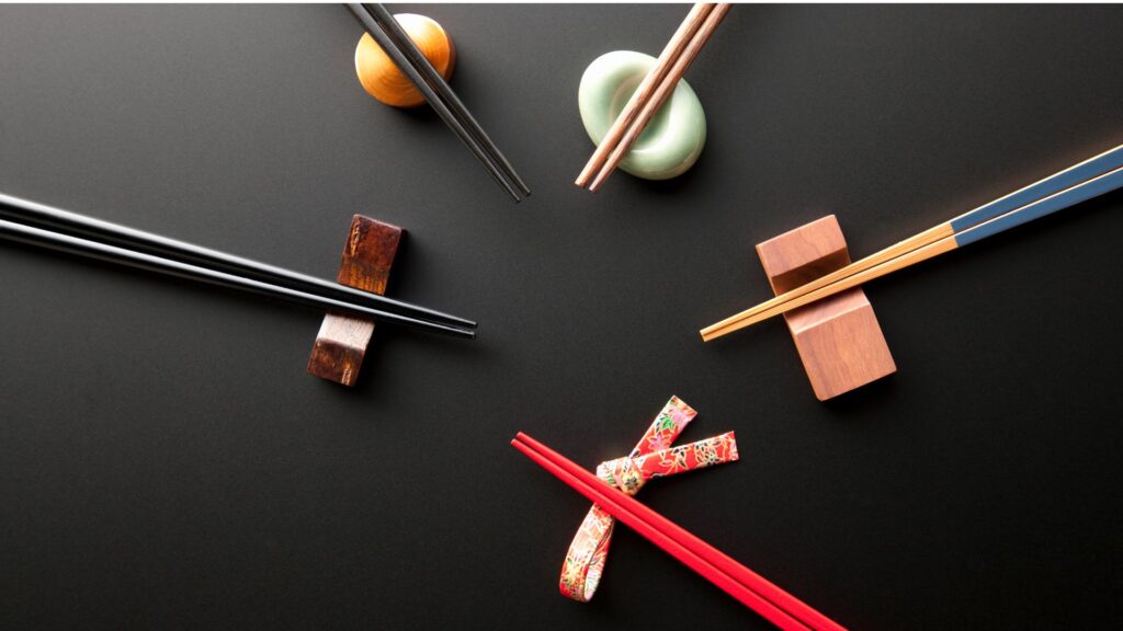 • Etiketas valgant su lazdelėmis – valgydami su tradiciniais japoniškais stalo įrankiais –  lazdelėmis –  nerodykite jomis į kitą asmenį. Taip pat nepalikite įsmeigtų lazdelių ryžių dubenėlyje. Namuose prie altorėlių tokiu būdu japonai maitina anapilin iškeliavusias sielas.