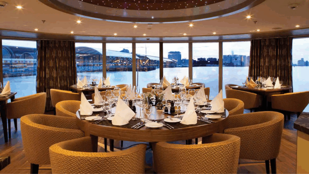 Naujųjų metų išvakarėse, laive vyks elegantiškas vakarėlis kur mėgausitės gyva muzika ir šventinėmis melodijomis. Kajutės atskirtos nuo vakarėlio erdvės, tad jei norėsite anksčiau eiti ilsėtis – ramiai tai galėsite padaryti.