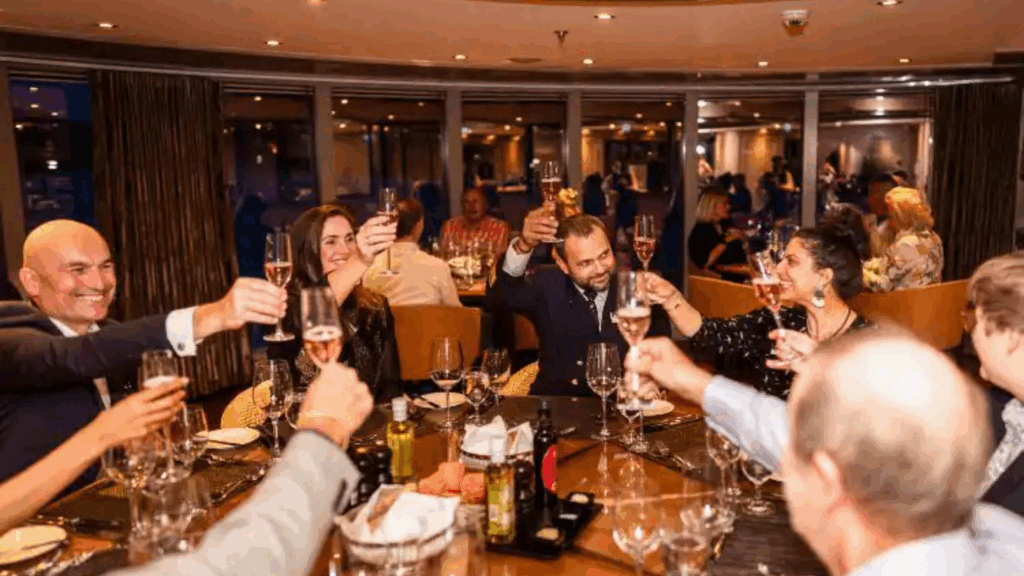 Laivo personalas pasirūpins, kad gruodžio 31-ąją, prieš pat vidurnaktį, nepritrūktų šampano, o prieš vakarienę galėsite pasimėgauti nemokama elegantiška kokteilių valandėle.